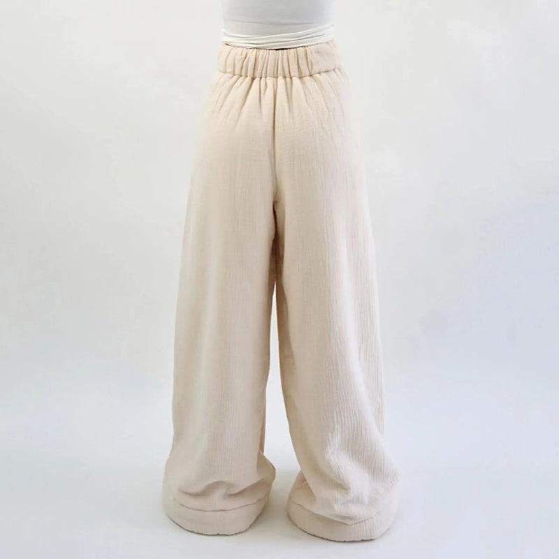 Casual loose fit with wide leg design. Check our size chart for best fit.